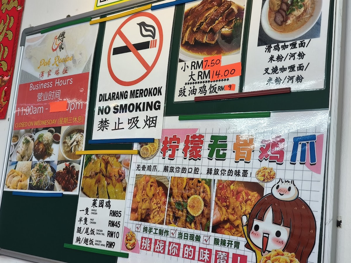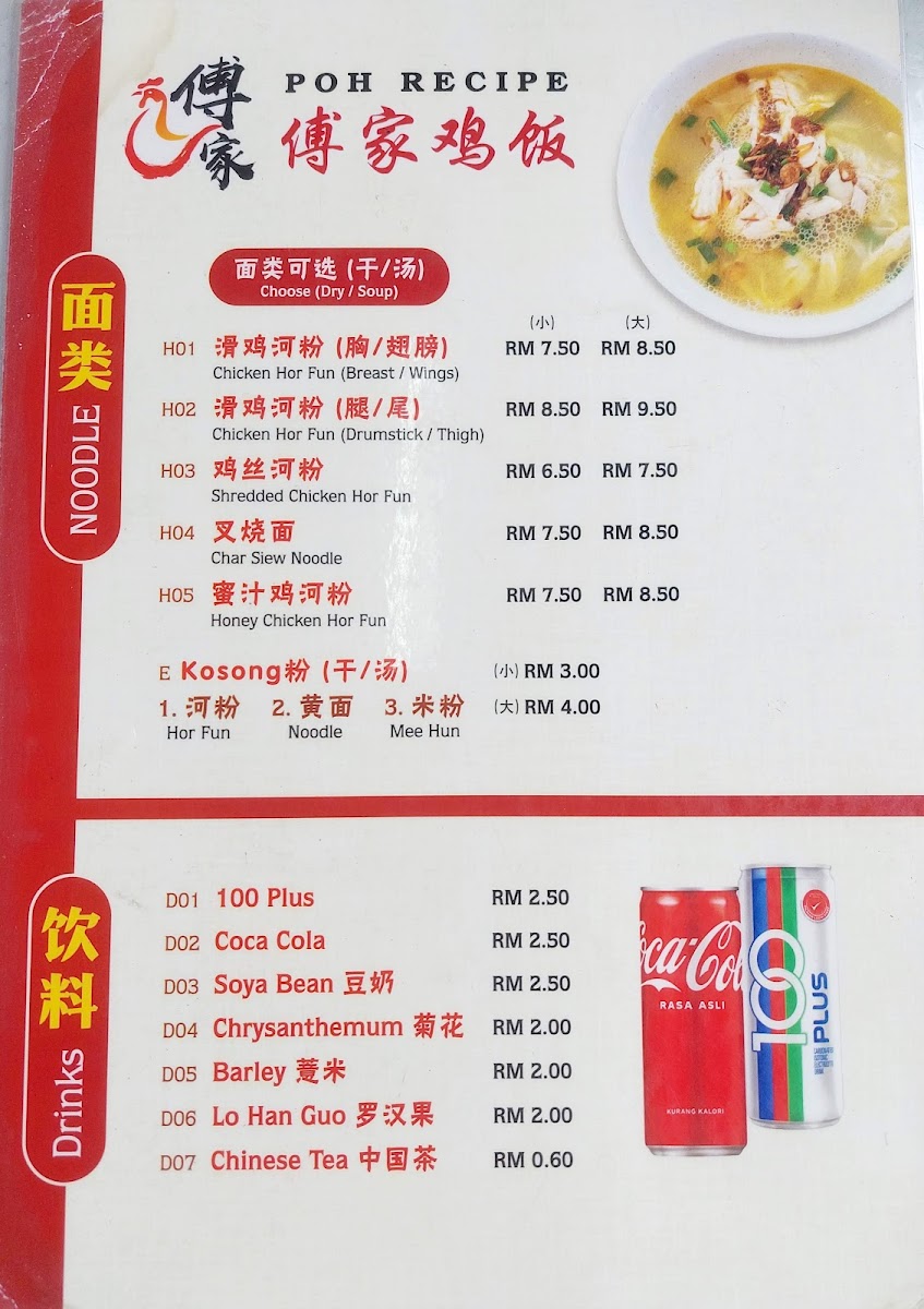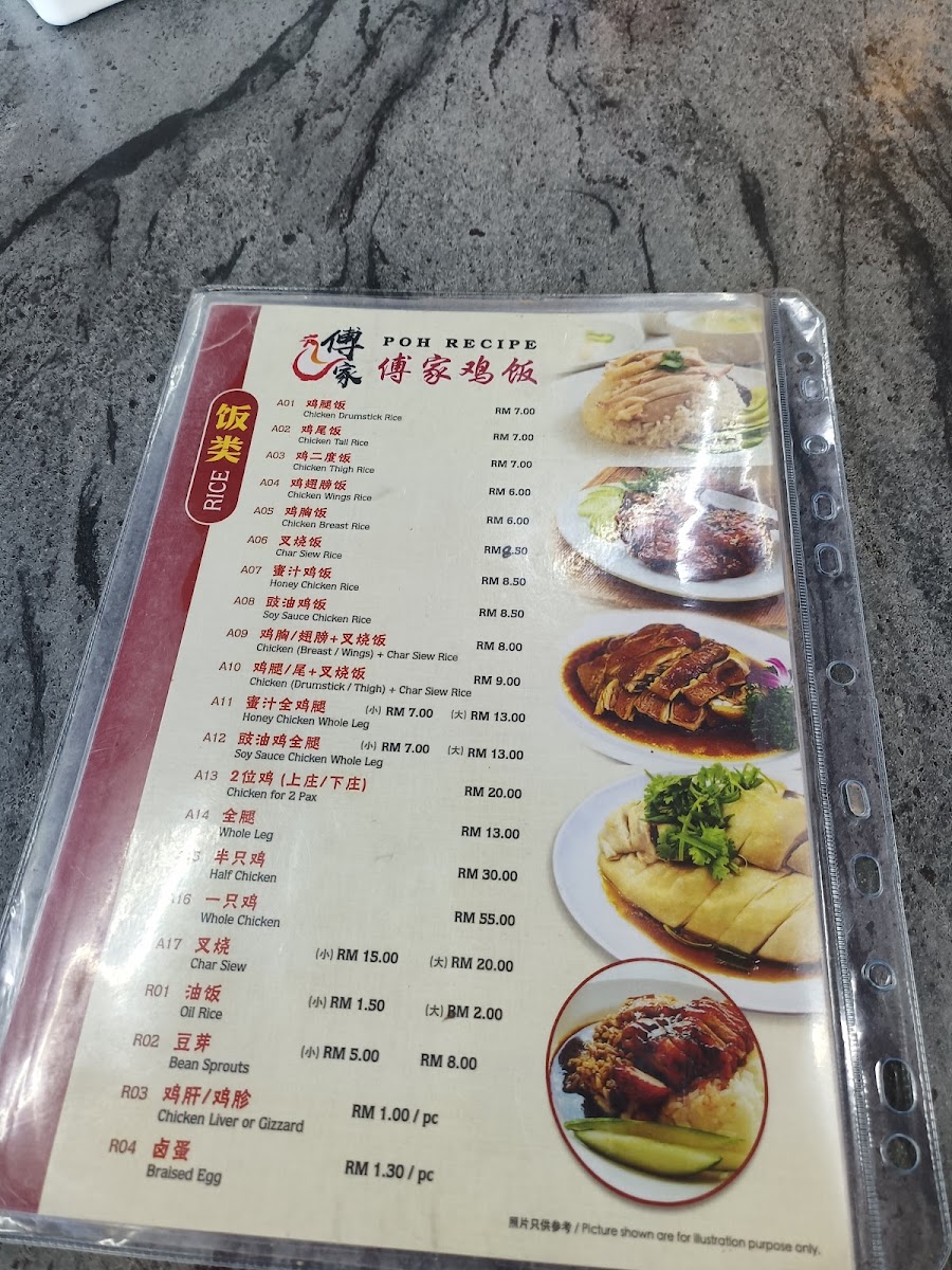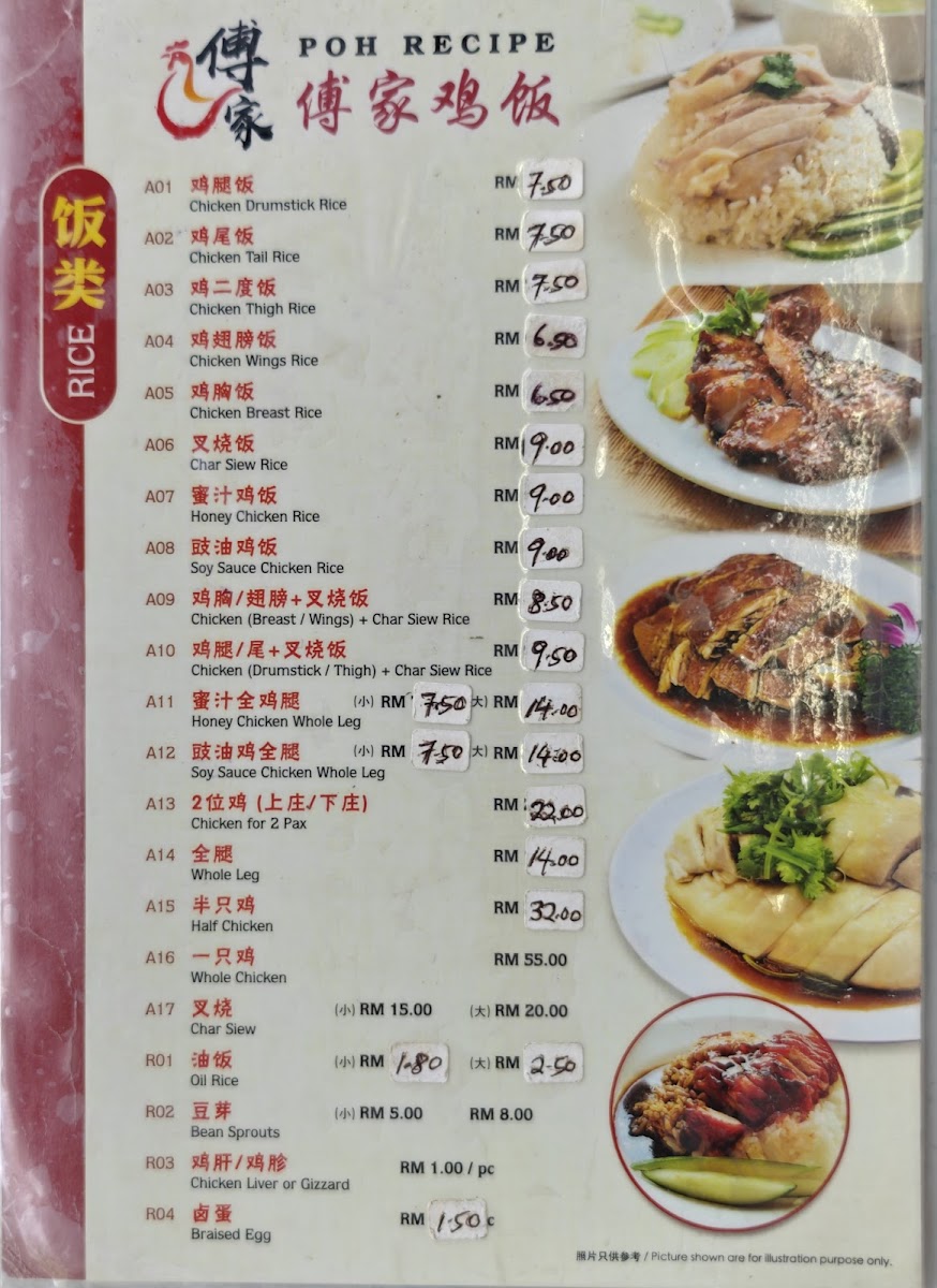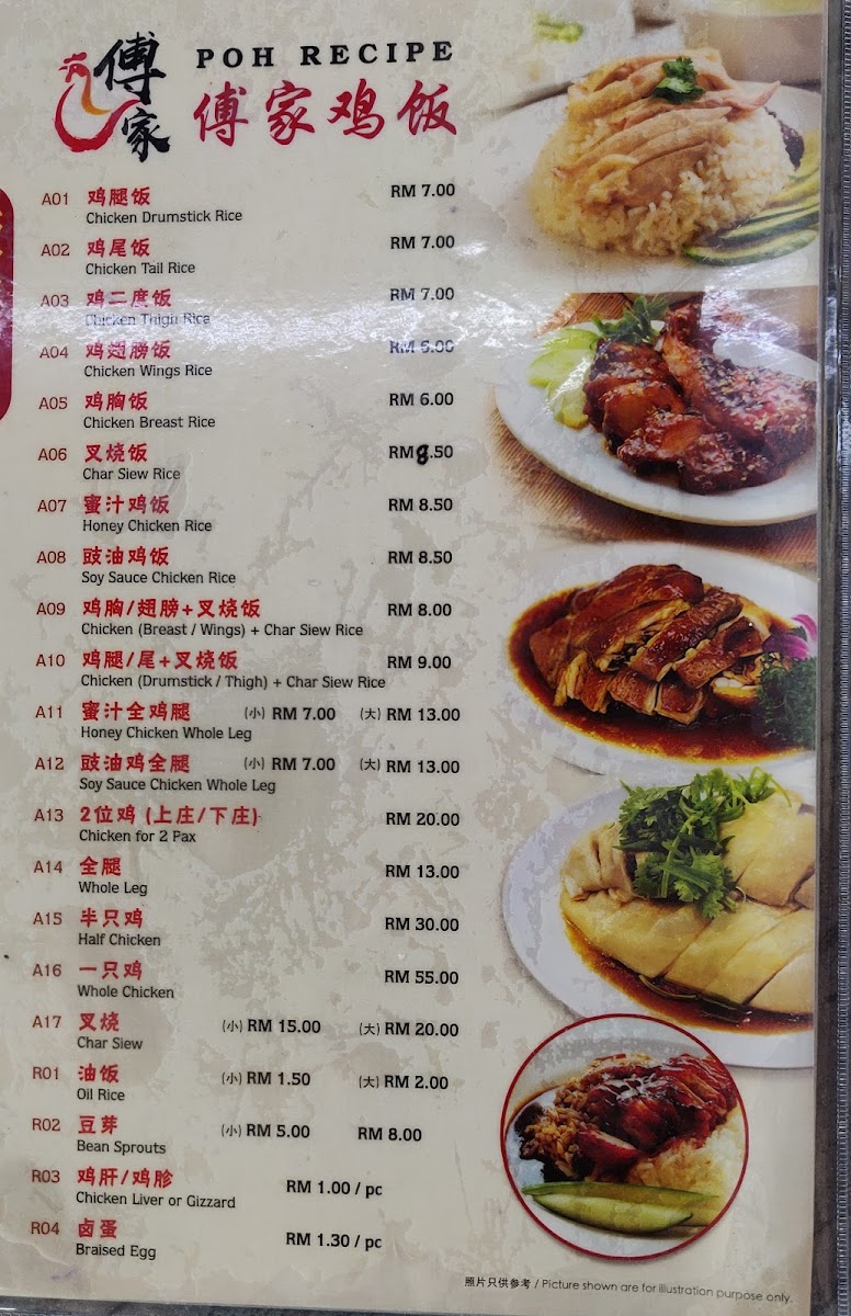 Poh Recipe 傅家鸡饭 Menu